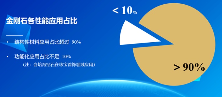 人造金剛石作為結(jié)構(gòu)性材料,主導(dǎo)著金剛石工具市場,其高效、精密且環(huán)保的特質(zhì),使其成為航空航天、汽車制造及電子信息等關(guān)鍵領(lǐng)域的核心工具,被譽(yù)為現(xiàn)代工業(yè)的基石。盡管在聲、光、電、磁、熱等多個(gè)高科技領(lǐng)域展現(xiàn)出巨大潛力,如半導(dǎo)體器件、熱管理材料、光學(xué)應(yīng)用及環(huán)保醫(yī)療等,但當(dāng)前人造金剛石的應(yīng)用仍主要集中于結(jié)構(gòu)性材料,占比高達(dá)90%以上,而功能化應(yīng)用的份額尚不足10%,預(yù)示著未來廣闊的發(fā)展空間和機(jī)遇。