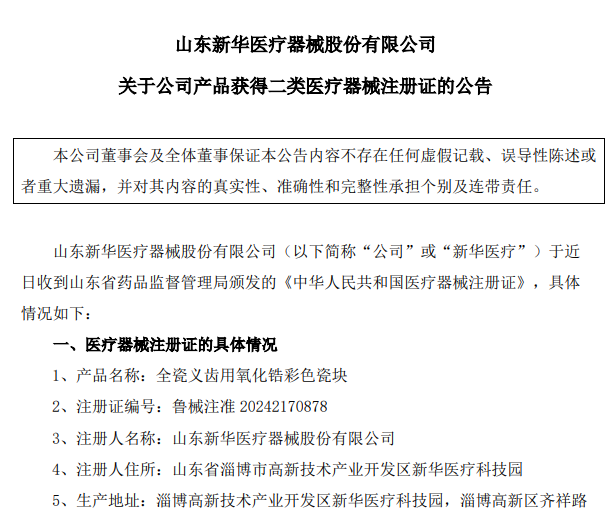 中國(guó)粉體網(wǎng)迅 10月9日,新華醫(yī)療發(fā)布公告,公司于近日收到山東省藥品監(jiān)督管理局頒發(fā)的《中華人民共和國(guó)醫(yī)療器械注冊(cè)證》。