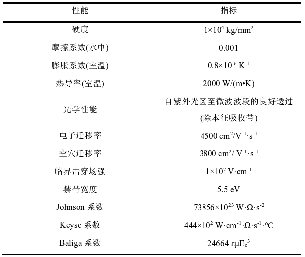 金剛石同樣是非常優(yōu)秀的超寬禁帶半導(dǎo)體材料,在半導(dǎo)體應(yīng)用方面有極大的應(yīng)用潛力,其電子遷移率可達到4500cm2/V-1·s-1,是GaN及Si的兩倍以上,空穴遷移率可達到3800cm2/ V-1·s-1,是Si的五倍以上,擊穿電壓可達到1×107V·cm-1,是GaN擊穿電壓的五倍。相較于目前廣泛應(yīng)用的半導(dǎo)體材料更能適應(yīng)高功率、高環(huán)境溫度、高輻射甚至極端條件下的工作環(huán)境。