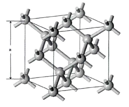 在晶體學(xué)中,金剛石結(jié)構(gòu)又稱為金剛石立方晶體結(jié)構(gòu)(diamond cubic lattice structure),原型是金剛石。在金剛石晶體中,每個碳原子都以sp3雜化軌道與另外4個碳原子形成共價鍵,構(gòu)成正四面體。金剛石立方晶體結(jié)構(gòu)中最小的碳環(huán)是六元環(huán),最小的閉合碳環(huán)是十元環(huán)。閉合的十元碳環(huán)非常重要,它是構(gòu)成晶胞的主要碳環(huán),它的6個碳原子位于晶胞的6個面心,其余4個位于晶胞的內(nèi)部,而另一個碳原子是晶胞的4個頂點。4個頂點的對角點就是四面體的另外4個頂點,十元環(huán)的對角線就是晶胞的棱長。