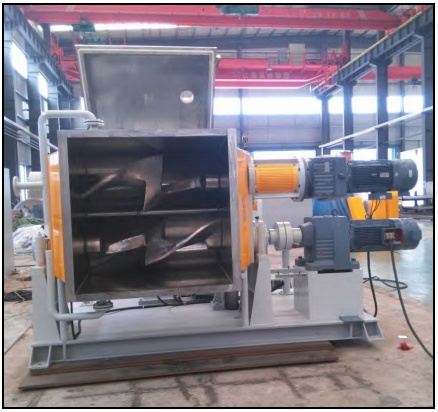捏合機的料槽通常帶有夾套,可以通導熱油或蒸氣進行加熱。在料槽頂部設有密封蓋,當需要抽真空時,應蓋緊并接入抽真空系統(tǒng)。