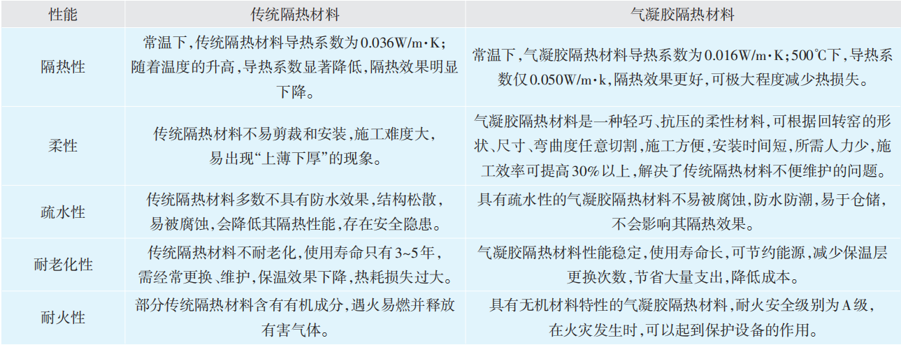傳統(tǒng)隔熱材料和氣凝膠隔熱材料性能對比