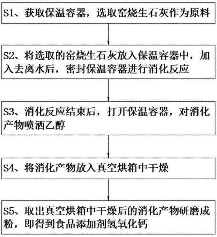 湖州浙寶鈣業(yè)科技股份有限公司公開(kāi)了一種食品添加劑氫氧化鈣的制備方法,涉及食品添加劑技術(shù)領(lǐng)域。包括如下步驟:獲取保溫容器,選取窯燒生石灰作為原料;將選取的窯燒生石灰放入保溫容器中,加入去離子水后,密封保溫容器進(jìn)行消化反應(yīng);消化反應(yīng)結(jié)束后,對(duì)消化產(chǎn)物噴灑乙醇;然后將消化產(chǎn)物放入真空烘箱中干燥。采用市售的窯燒氧化鈣生產(chǎn)氫氧化鈣,原料廉價(jià)易得;生產(chǎn)過(guò)程中不使用表面活性劑,所制得的氫氧化鈣表面沒(méi)有有機(jī)物附著,提高了氫氧化鈣純度,可安全地用作食品添加劑;對(duì)從真空烘箱中逸出的氣體冷凝收集后,再經(jīng)精餾回收乙醇、供循環(huán)利用,乙醇利用率高,充分利用,提高原料利用率,降低成本。