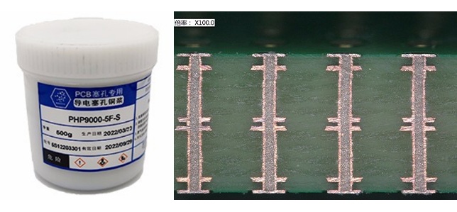 該產(chǎn)品無(wú)鹵環(huán)保,不含有機(jī)溶劑,是高導(dǎo)電率,高導(dǎo)熱塞孔樹脂,單組份、高導(dǎo)電性、高可靠性;與鍍層具有優(yōu)異的粘附力,優(yōu)異的硬度,好研磨,電鍍無(wú)凹陷,平整性好,較低熱膨脹系數(shù)和高尺寸穩(wěn)定性,無(wú)裂紋,可靠性高,極佳粘接強(qiáng)度和耐化學(xué)腐蝕性強(qiáng),與沉銅電鍍銅的連接可靠性好。
