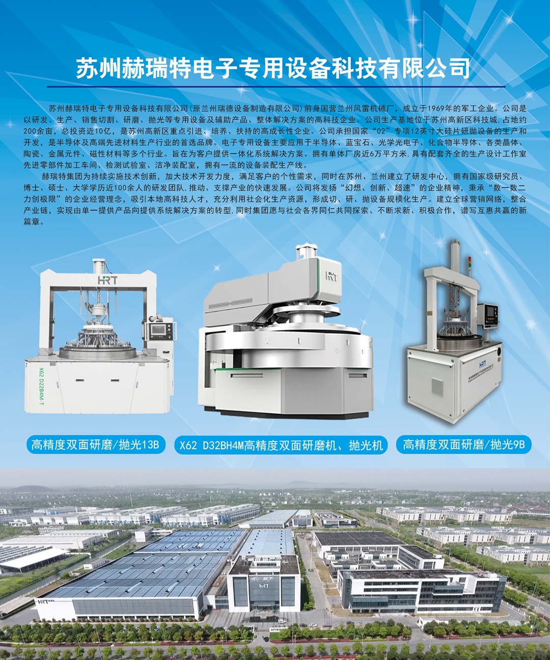蘇州赫瑞特電子專用設(shè)備科技有限公司,承擔(dān)國(guó)家“02”專項(xiàng)12英寸大硅片研拋設(shè)備的生產(chǎn)和開發(fā)。赫瑞特品牌是中科院、中國(guó)電子科技集團(tuán)、中國(guó)航天等國(guó)家科研院所指定設(shè)備提供商,是半導(dǎo)體及高端先進(jìn)材料生產(chǎn)行業(yè)的首選品牌。所有產(chǎn)品均擁有完全自主知識(shí)產(chǎn)權(quán)并多次榮獲國(guó)家重點(diǎn)新產(chǎn)品、電子行業(yè)用戶滿意產(chǎn)品、中國(guó)半導(dǎo)體創(chuàng)新產(chǎn)品、省級(jí)名牌產(chǎn)品、省級(jí)科學(xué)技術(shù)進(jìn)步獎(jiǎng)等各類獎(jiǎng)項(xiàng)及榮譽(yù),并通過(guò)ISO9001 國(guó)家質(zhì)量體系認(rèn)證。先后開發(fā)研制專用設(shè)備150 余種,銷售數(shù)萬(wàn)臺(tái),產(chǎn)品遍及國(guó)內(nèi)29 個(gè)省市自治區(qū),品遍及國(guó)內(nèi)29 個(gè)省市自治區(qū),并遠(yuǎn)銷美國(guó)、日本、英國(guó)、德國(guó)、俄羅斯、韓國(guó)、新加坡、印度、馬來(lái)西亞、伊朗、菲律賓、越南、臺(tái)灣等國(guó)家和地區(qū)。