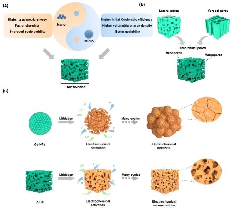 微納分級(jí)多孔Ge電化學(xué)儲(chǔ)鋰優(yōu)勢(shì)和服役機(jī)制圖