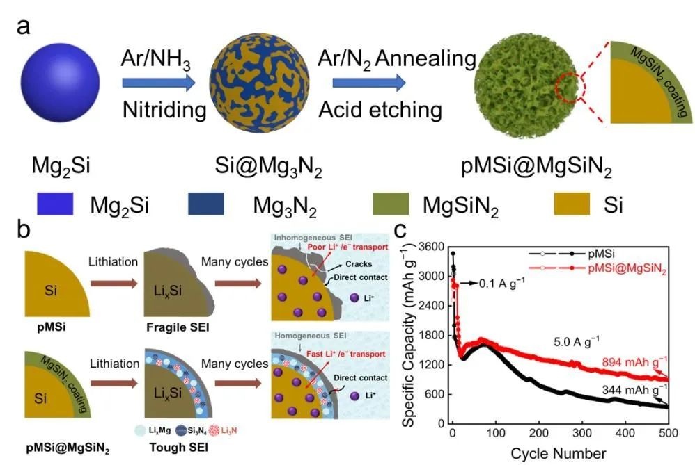 pMSi@MgSiN2合成與服役機(jī)制圖及儲(chǔ)鋰性能