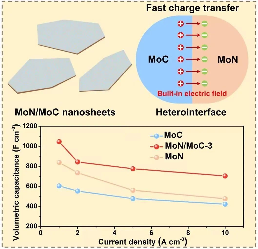 二維MoC/MoN面內(nèi)異質(zhì)結(jié)與界面作用示意圖及相應(yīng)體積容量