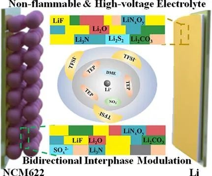 安全、高壓電解液雙向調(diào)控正負(fù)極界面示意圖