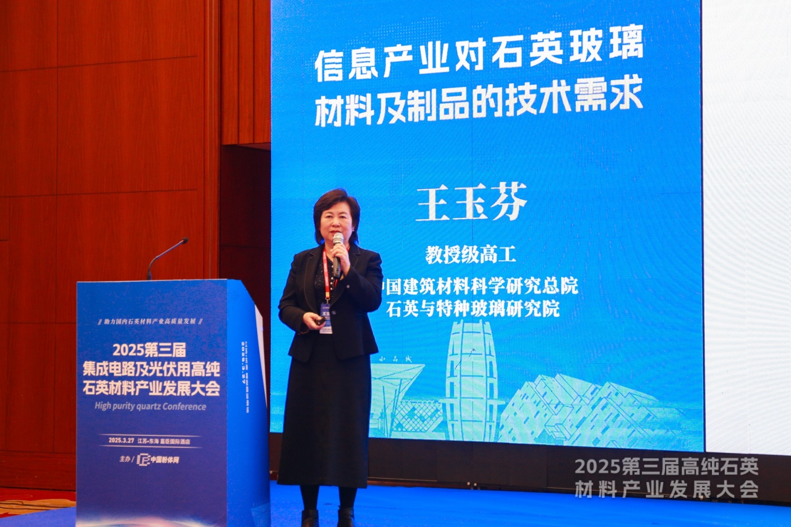 中國(guó)建筑材料科學(xué)研究總院石英與特種玻璃研究院教授級(jí)高工王玉芬作《信息產(chǎn)業(yè)對(duì)石英玻璃材料及制品的技術(shù)需求》報(bào)告