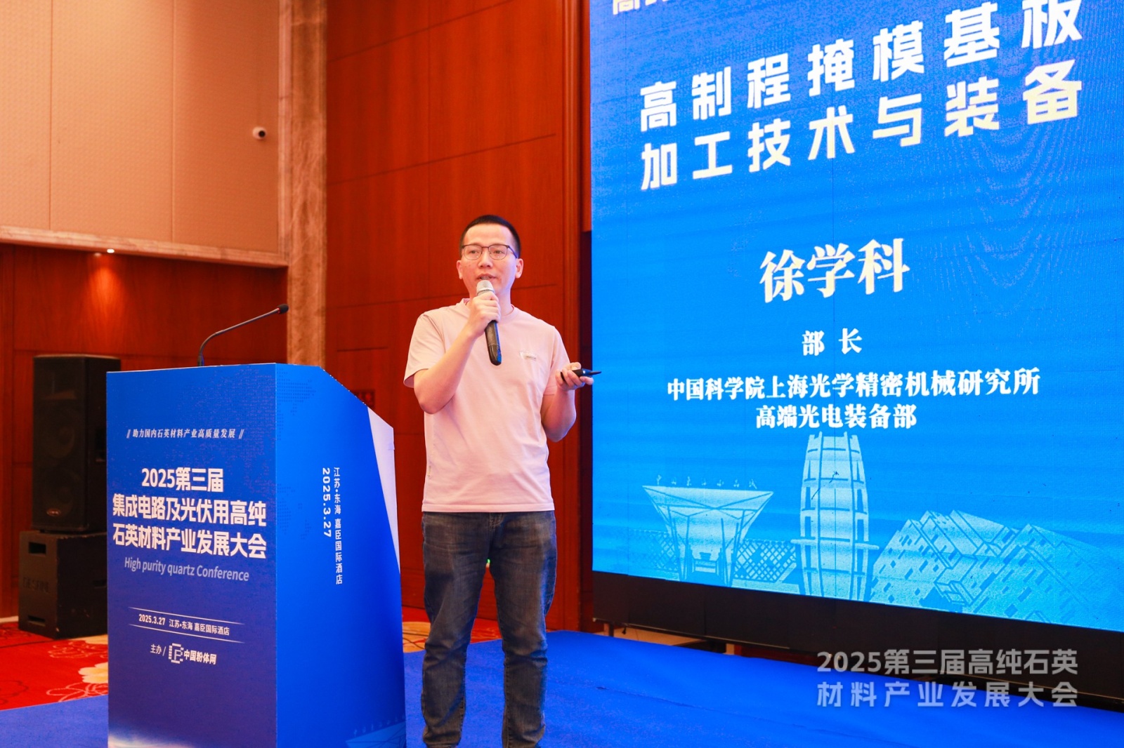 中國(guó)科學(xué)院上海光學(xué)精密機(jī)械研究所高端光電裝備部部長(zhǎng)徐學(xué)科(嵇文超代)作《高制程掩模基板加工技術(shù)與裝備》報(bào)告