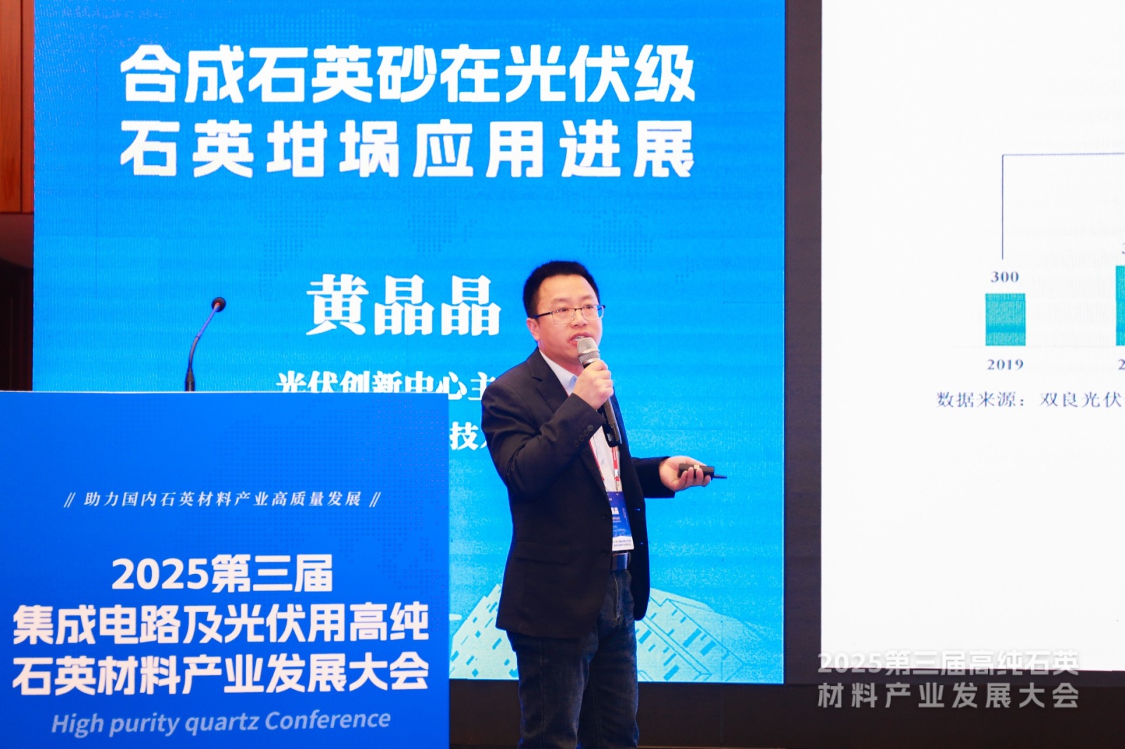 江蘇雙良低碳產(chǎn)業(yè)技術(shù)研究院光伏創(chuàng)新中心主任黃晶晶作《合成石英砂在光伏級(jí)石英坩堝應(yīng)用進(jìn)展》報(bào)告