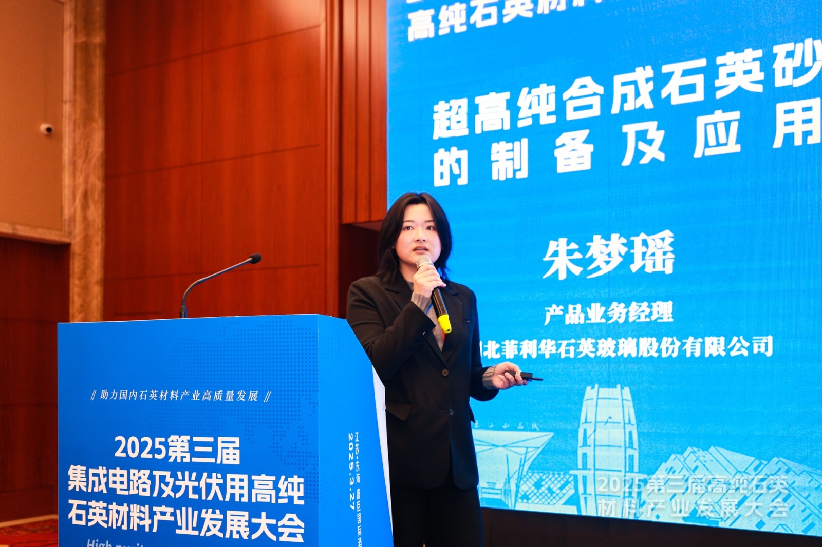 湖北菲利華石英玻璃股份有限公司產(chǎn)品業(yè)務(wù)經(jīng)理朱夢(mèng)瑤作《超高純合成石英砂的制備及應(yīng)用》報(bào)告