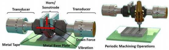 超聲波增材制造技術(shù)(UAM)是一種基于高頻機(jī)械振動(dòng)與摩擦的固相連接工藝,通過金屬箔材的層層固結(jié)實(shí)現(xiàn)構(gòu)件成型,無需熔化材料。相較于傳統(tǒng)熔化型增材技術(shù),UAM可有效規(guī)避高溫導(dǎo)致的金屬氧化、相變及殘余應(yīng)力問題,尤其適用于異種金屬連接(如銅/鋁、鋁/鈦)和功能梯度材料構(gòu)建,為輕量化、高性能結(jié)構(gòu)件制造開辟新路徑。