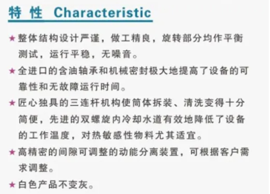 整體結(jié)構(gòu)設(shè)計(jì)嚴(yán)謹(jǐn),做工精良,旋轉(zhuǎn)部分均作平衡測(cè)試,運(yùn)行平穩(wěn),無(wú)噪音。 全進(jìn)口的含油軸承和機(jī)械密封極大地提高了設(shè)備的可靠性和無(wú)故障運(yùn)行時(shí)間。 出料通暢永不堵塞,無(wú)清理出料裝置的煩惱,流量可控,溫度易控。 粒徑更細(xì)、顆粒均勻、分布更窄,離心研磨結(jié)構(gòu),比傳統(tǒng)臥式機(jī)研磨效率提高50%以上。
