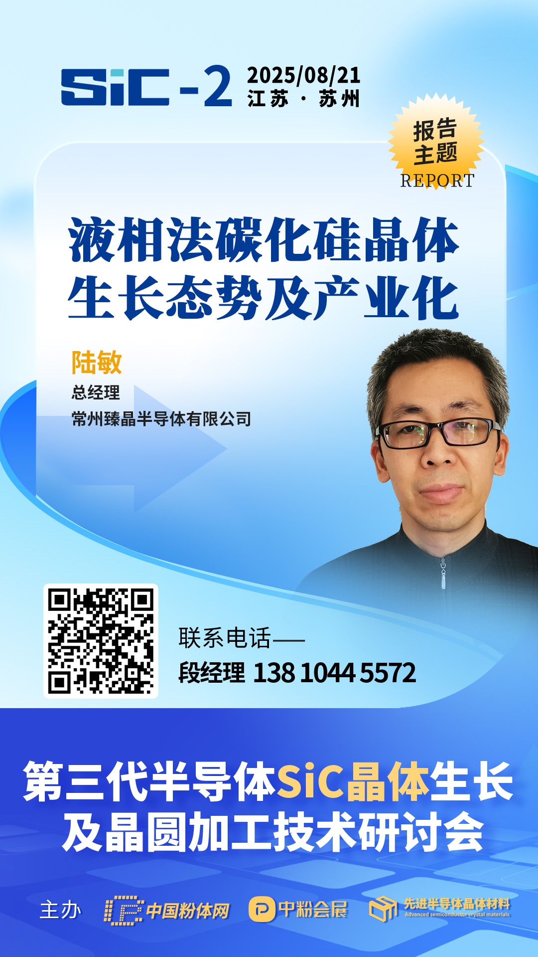 2025年8月21日,中國粉體網(wǎng)將在蘇州舉辦第三代半導(dǎo)體SiC晶體生長及晶圓加工技術(shù)研討會(huì)。屆時(shí),來自常州臻晶半導(dǎo)體有限公司總經(jīng)理陸敏將帶來《液相法碳化硅晶體生長態(tài)勢及產(chǎn)業(yè)化》的報(bào)告,報(bào)告中將介紹液相法技術(shù)進(jìn)展,包括摻雜調(diào)控、缺陷控制、晶體長厚等,并分享臻晶半導(dǎo)體在液相法單晶爐及其碳化硅長晶工藝技術(shù)等研究最新成果,同時(shí)探討液相法產(chǎn)業(yè)化關(guān)鍵問題及對策,并展望液相法未來發(fā)展前景。