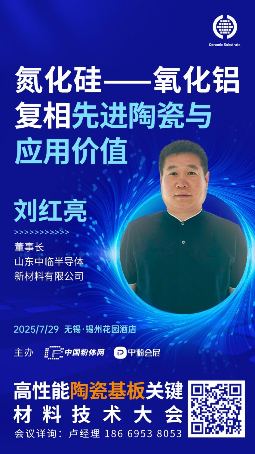 半導體及電子信息產(chǎn)業(yè)的快速發(fā)展對核心材料的性能提出了更高要求。陶瓷基板作為功率半導體器件的關鍵封裝材料,其導熱性能、機械強度、可靠性和精密程度直接決定了終端產(chǎn)品的性能與壽命。針對材料研發(fā)、制備工藝、檢測技術、應用場景等核心議題,中國粉體網(wǎng)將于2025年7月29日在江蘇無錫舉辦2025高性能陶瓷基板關鍵材料技術大會。屆時,山東中臨半導體新材料有限公司董事長劉紅亮將作題為《氮化硅——氧化鋁復相先進陶瓷與應用價值》的報告,報告將從以下幾個方面展開:①復相陶瓷技術特性②軍工領域應用分析③民用市場應用拓展④核心工藝與設備⑤市場前景與挑戰(zhàn)。