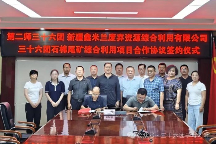 2025年6月18日,三十六團(tuán)與新疆鑫米蘭廢棄資源綜合利用有限公司舉行了石棉尾礦綜合利用項(xiàng)目簽約儀式。此次簽約的石棉尾礦綜合利用項(xiàng)目計(jì)劃總投資達(dá)12億元,項(xiàng)目將分兩期同步進(jìn)行,第一期安裝三條生產(chǎn)線;第二期在三十六團(tuán)米蘭產(chǎn)業(yè)園區(qū)內(nèi)新建鎂、鋁冶煉項(xiàng)目。