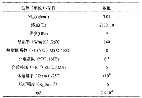 高的熱導(dǎo)率和低的介電常數(shù)是BeO陶瓷材料在電子技術(shù)領(lǐng)域得到廣泛應(yīng)用的重要原因。BeO陶瓷目前已用于高性能、高功率微波封裝件、高頻電子晶體管封裝、高電路密度的多片組件。
