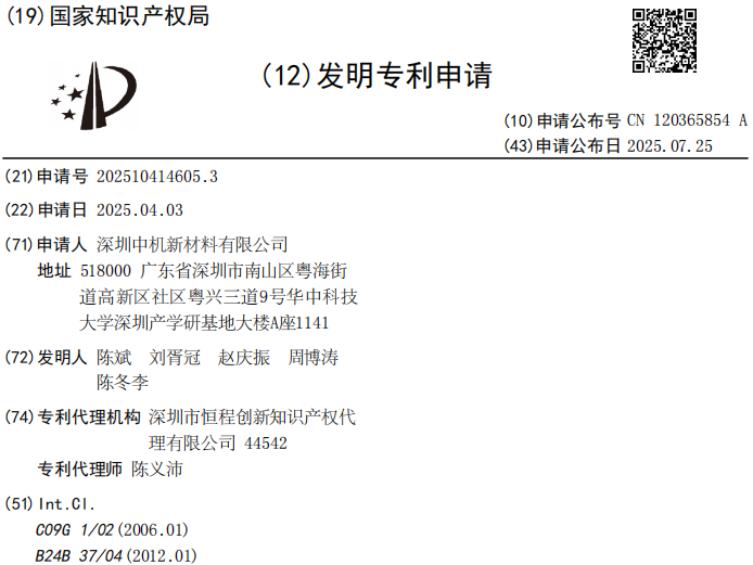 中國(guó)粉體網(wǎng)訊 近日,國(guó)家知識(shí)產(chǎn)權(quán)局信息顯示,深圳中機(jī)新材料有限公司申請(qǐng)一項(xiàng)名為“一種用于金剛石襯底的精拋液及其制備方法、金剛石襯底的拋光方法”的專利,公開號(hào)CN120365854A,申請(qǐng)日期為2025年04月。