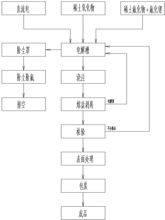 項(xiàng)目采用國內(nèi)領(lǐng)先的熔鹽電解工藝,配置91臺10000A大型電解槽,電流效率超過87%,遠(yuǎn)超行業(yè)標(biāo)準(zhǔn)。通過氟化物-氧化物熔鹽體系,將稀土氧化物轉(zhuǎn)化為高純度金屬及合金,涵蓋鐠釹金屬、金屬鈰、鑭鈰合金等高附加值產(chǎn)品。