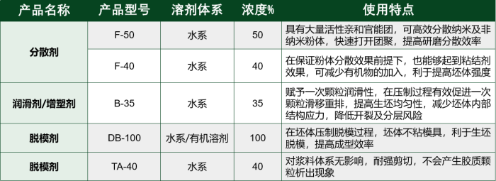 (2)增塑劑(B系列):降低壓制應(yīng)力,減少坯體開(kāi)裂風(fēng)險(xiǎn)。