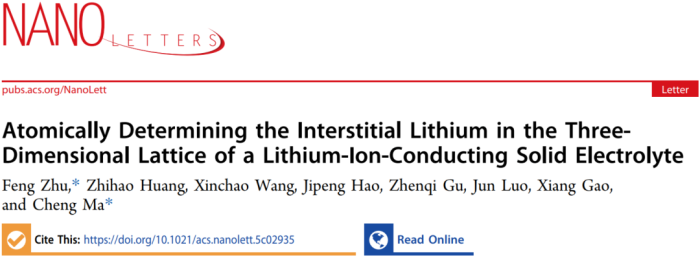 2025年7月11日,馬騁教授團隊利用一種新興的球差校正電鏡成像技術——積分差分相位襯度像(iDPC)——成功實現(xiàn)了對固態(tài)電解質(zhì)晶格中鋰的原子級成像,并以此發(fā)現(xiàn)鈣鈦礦固態(tài)電解質(zhì)的晶格中除了傳統(tǒng)認知的A位和O4空隙位以外,還存在第三個可容納鋰的晶體學位點,從而提出了新的離子傳輸機理。相關研究成果以“Atomically Determining the Interstitial Lithium in the Three-Dimensional Lattice of a Lithium-Ion-Conducting Solid Electrolyte”為題發(fā)表在Nano Letters上。