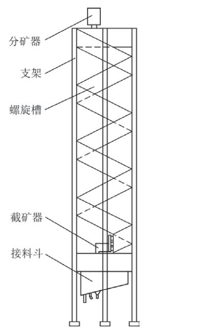 螺旋選礦機(jī)主要由分礦器、支架、螺旋槽、截礦器、接料斗5部分組成。
