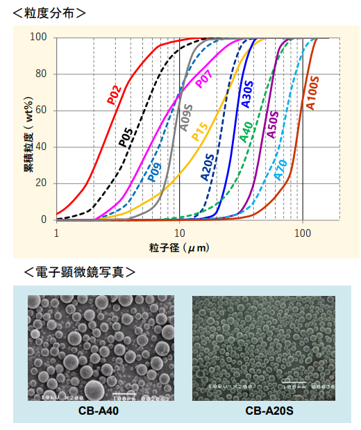 該公司球形氧化鋁CB系列是通過其擁有的熔融技術及高精度的分級技術生產出的高純度的氧化鋁球形粒子。通過它優(yōu)越的流動性和填充性,可作為樹脂和橡膠的填充材料被廣泛使用。同時,該產品又具有良好的作為特殊拋光材料的特性。