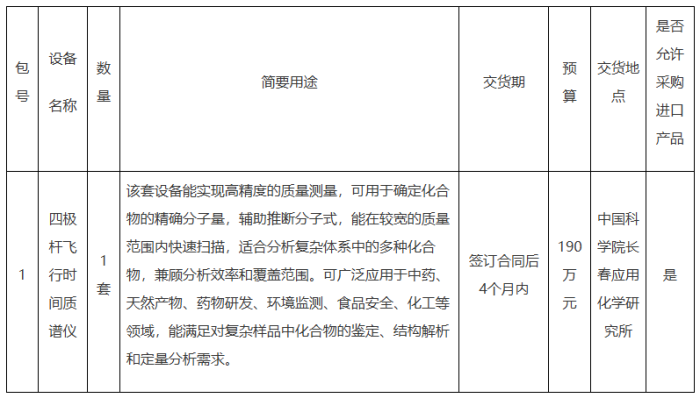 項(xiàng)目名稱:中國(guó)科學(xué)院長(zhǎng)春應(yīng)用化學(xué)研究所四極桿飛行時(shí)間質(zhì)譜儀采購(gòu)項(xiàng)目
