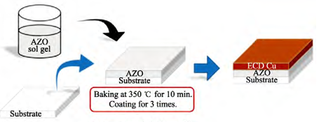 玻璃基板上AZO浸涂工藝 來源:Cheng. Direct copper pattern plating on glass and ceramic substrates using an Al-doped ZnO as an adhesive and conducting layer