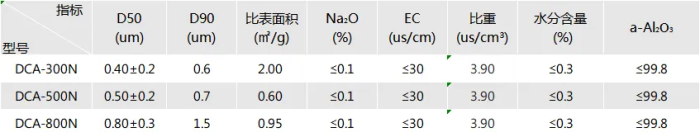 Ⅱ、納米氧化鋁DCA-N系列主要性能指標(biāo):