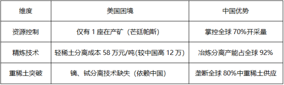 3. 供應(yīng)鏈自主:美國斥資10億美元扶持MP重建本土產(chǎn)業(yè)鏈,目標(biāo)2028年實現(xiàn)萬噸級永磁體產(chǎn)能,擺脫對中國90%精煉產(chǎn)能的依賴。
