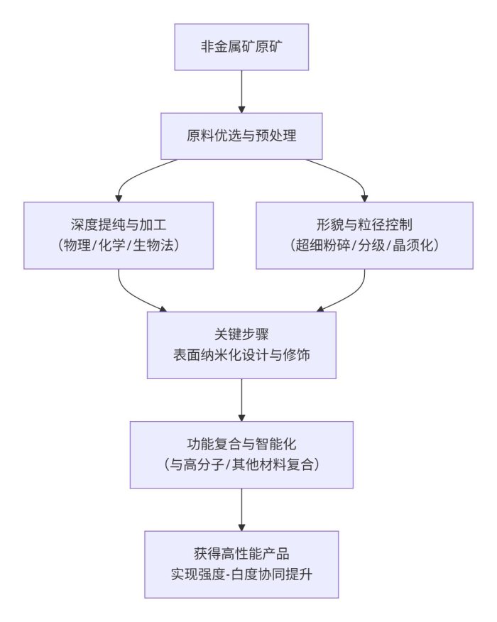 近年來(lái),材料科學(xué)與粉體技術(shù)的進(jìn)步正推動(dòng)著從礦物精選、超微粉碎到表面功能化整個(gè)產(chǎn)業(yè)鏈的升級(jí),使得強(qiáng)度與白度的協(xié)同提升成為可能,并呈現(xiàn)出清晰的技術(shù)發(fā)展趨勢(shì)。