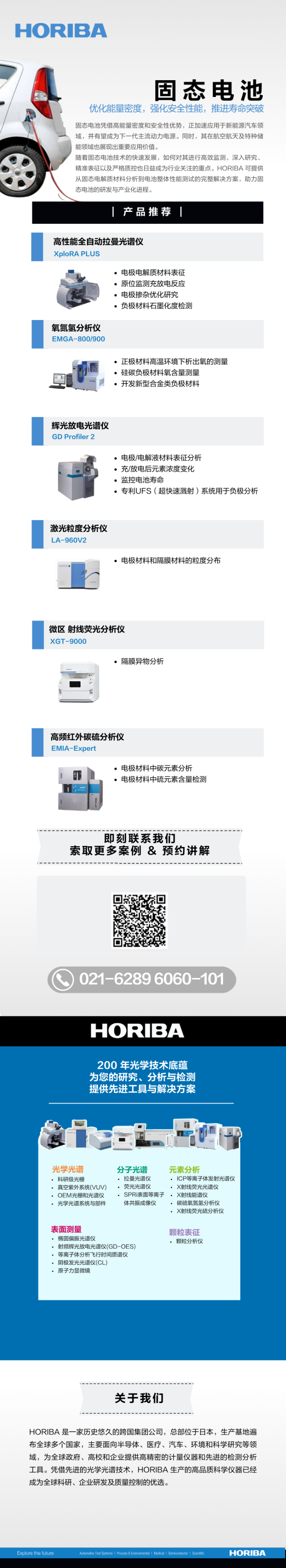 HORIBA 是全球著名的分析與檢測儀器制造商之一。致力于為用戶提供先進的檢測和分析儀器,涉及光學(xué)光譜、分子光譜、表面測量、粒度表征、元素分析等。HORIBA 旗下?lián)碛斜姸嘀放频募夹g(shù)優(yōu)勢,包括近 200年光譜制造技術(shù)經(jīng)驗的 Jobin Yvon。今天,HORIBA 的各種高端檢測分析儀器已經(jīng)遍布全球各地,并在中國實現(xiàn)了銷售和服務(wù)的本土化,位于上海、北京、廣州、西安、成都、武漢等地的產(chǎn)品專家、售后服務(wù)團隊以及全國各地的代理商機構(gòu)可充分保障國內(nèi)用戶的技術(shù)咨詢和售后服務(wù)需求。