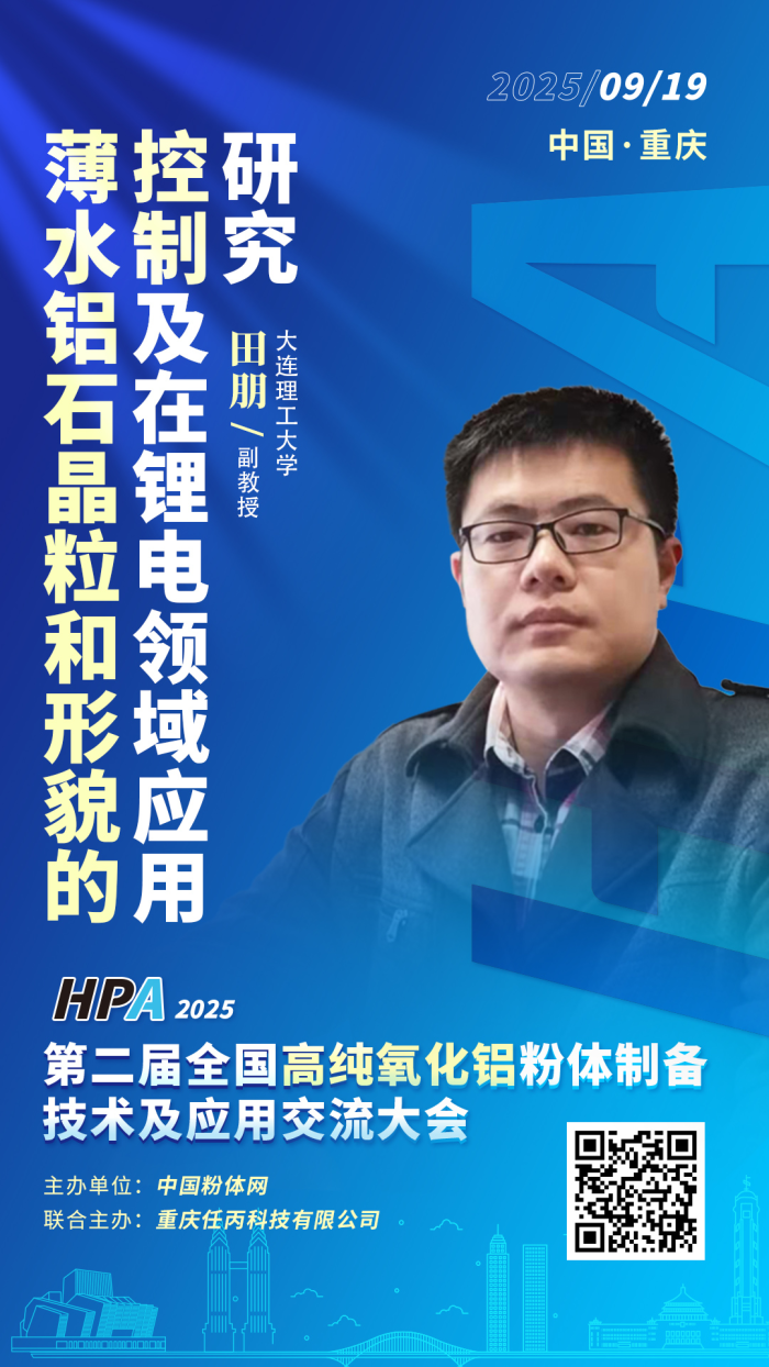 為了研究形貌和晶粒尺寸對薄水鋁石作為填料在鋰電池隔膜填料、固態(tài)電解質填料上應用性能的影響,大連理工大學田朋副教授課題組合成了不同形貌和尺寸的薄水鋁石,并將其用于鋰電池領域,以弄清相應的構效關系。9月19日,中國粉體網(wǎng)將在中國·重慶舉辦2025全國高純氧化鋁粉體制備技術及應用交流大會。屆時,田朋副教授將蒞臨大會并作題為《薄水鋁石晶粒和形貌的控制及在鋰電領域應用研究》的報告。