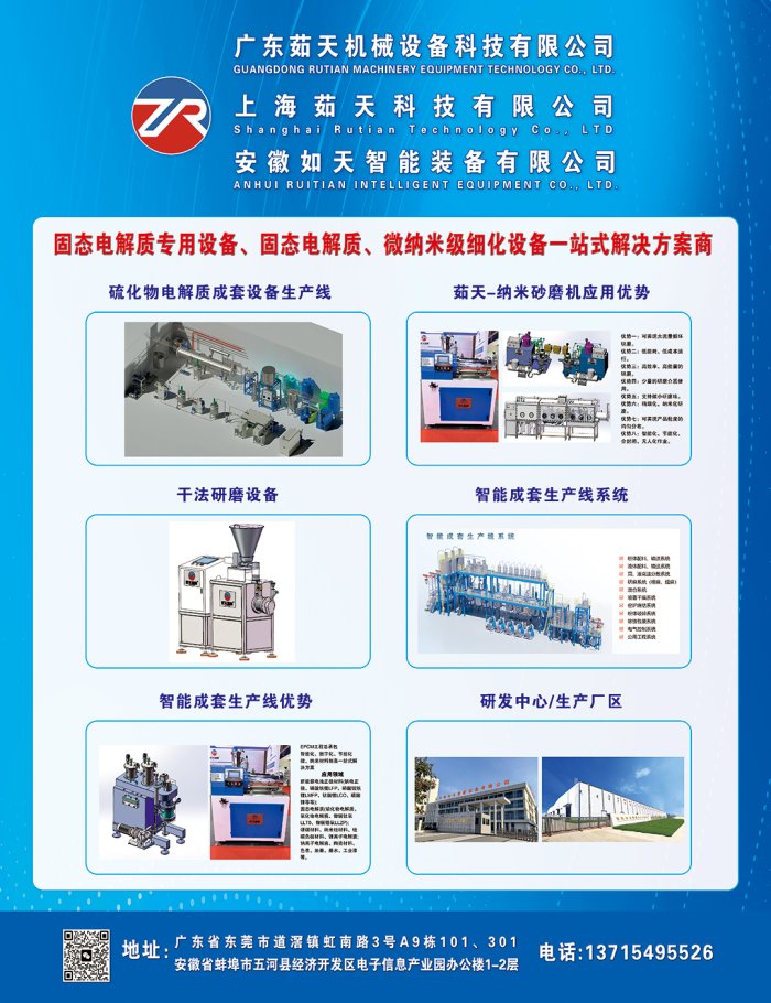 第七屆高比能固態(tài)電池關(guān)鍵材料技術(shù)大會(huì)將于2025年9月23-24日在蘇州舉辦,廣東茹天機(jī)械設(shè)備科技有限公司邀請(qǐng)您共同出席。