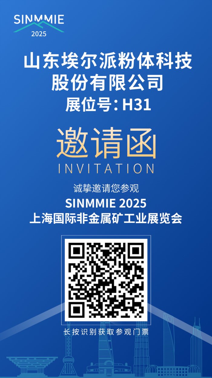 上海國際非金屬礦工業(yè)展覽會(SINMMIE2025)將于2025年10月29-31日在上?鐕少彆怪行舉辦,埃爾派邀請您共同出席。