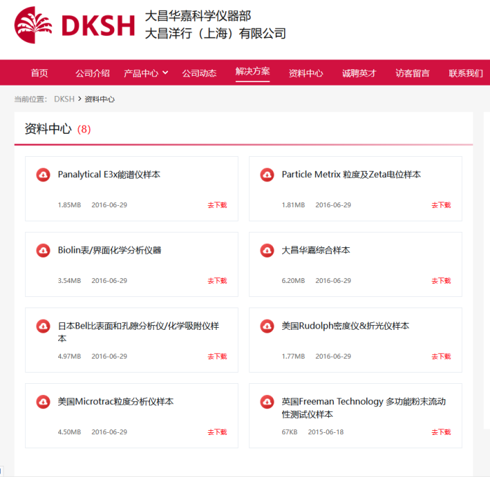 •資料中心展示:粉享通為大昌華嘉開(kāi)設(shè) “資料中心” 專(zhuān)屬專(zhuān)區(qū),為客戶(hù)提供了一個(gè)集中、便捷的專(zhuān)業(yè)資料獲取平臺(tái)。該頁(yè)面清晰陳列了其代理的各類(lèi)高端科學(xué)儀器(如能譜儀、粒度分析儀、孔隙分析儀等)的產(chǎn)品樣本與技術(shù)文檔?蛻(hù)可以輕松瀏覽文件名稱(chēng)、大小及發(fā)布日期,并通過(guò)“去下載”按鈕快速獲取所需的詳細(xì)資料。這一功能強(qiáng)大的資料庫(kù)極大地便利了客戶(hù)深入了解產(chǎn)品特性、技術(shù)參數(shù)與應(yīng)用方案,是客戶(hù)獲取專(zhuān)業(yè)知識(shí)、進(jìn)行設(shè)備選型與科研決策的重要支持工具,有效體現(xiàn)了公司致力于為客戶(hù)提供全面技術(shù)服務(wù)的價(jià)值。
