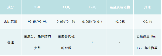 據(jù)了解,超白玻璃是以低鐵石英砂為主要原料制備的一種低鐵、高透明度的硅酸鹽玻璃。光伏行業(yè)是超白玻璃的主要應(yīng)用領(lǐng)域。而低鐵石英砂是超白玻璃生產(chǎn)最主要的原料,它在超白玻璃原料中的占比一般在60%以上。原料中的鐵含量對超白玻璃透光率的影響最大,其次是鈦,因?yàn)檩^高的鐵含量會使得超白玻璃發(fā)綠,而較高的鈦含量會使得超白玻璃發(fā)黃,二者都會降低可見光透過率。因此,必須采用低鐵石英砂才能滿足超白玻璃質(zhì)量要求。