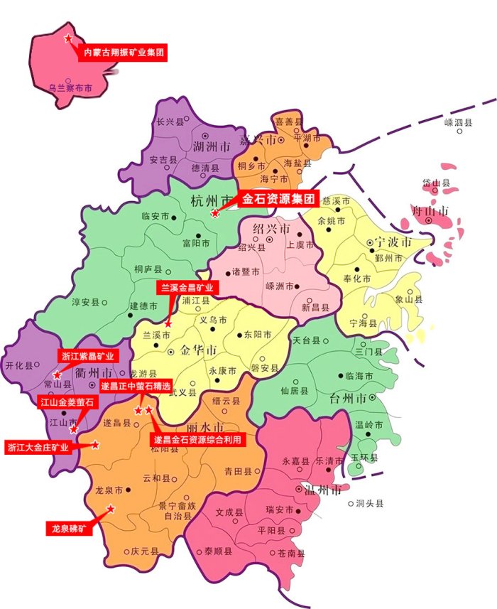 公司總部位于杭州,下屬20家全資或控股子公司,主要位于浙江、安徽、江西以及內(nèi)蒙古自治區(qū)。公司目前擁有已查明保有單一螢石資源儲量約2,700萬噸,與包鋼股份合作開發(fā)的伴共生螢石資源量1.3億噸,是我國螢石資源儲量、開采及生產(chǎn)加工規(guī)模遙遙領先的企業(yè),也是我國非金屬礦采選行業(yè)第一家上市公司。