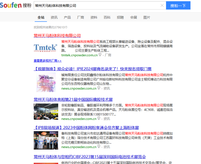 作為粉享通白金會(huì)員,常州天馬享有 “核心關(guān)鍵詞綁定 + 搜索結(jié)果優(yōu)先展示” 的專屬權(quán)益。當(dāng)用戶在粉體網(wǎng)搜粉引擎搜索 “常州天馬粉體”“超細(xì)功能性粉體”“新能源粉體材料”“醫(yī)藥級(jí)粉體定制” 等關(guān)鍵詞時(shí),常州天馬的企業(yè)展臺(tái)、核心產(chǎn)品將直接位居搜索結(jié)果首位,相關(guān)技術(shù)方案與成功案例也會(huì)同步前置推薦。