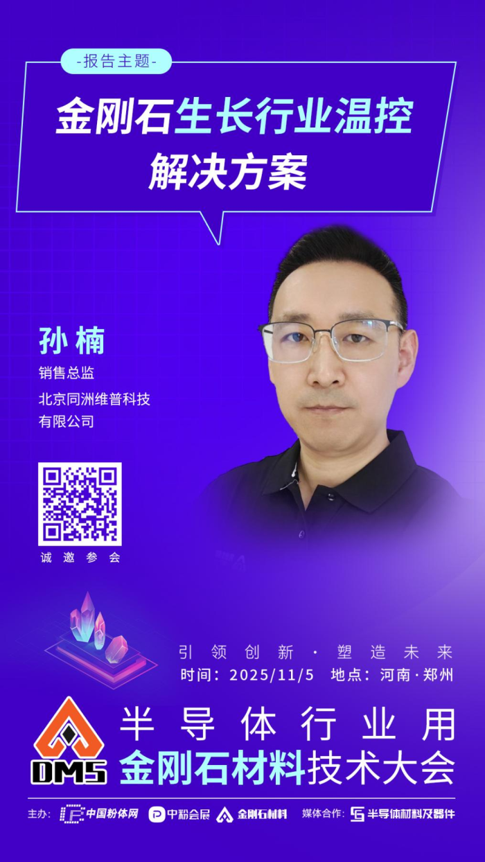 2025年11月5日,中國(guó)粉體網(wǎng)將在河南•鄭州舉辦“2025半導(dǎo)體行業(yè)用金剛石材料技術(shù)大會(huì)”。屆時(shí),來自北京同洲維普科技有限公司銷售總監(jiān)孫楠將帶來《金剛石生長(zhǎng)行業(yè)溫控解決方案》的報(bào)告。