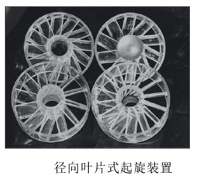 T.Bali等設(shè)計(jì)了一種起旋裝置,該起旋器裝置后部采用三根輪輻作為支撐,前部為葉片結(jié)構(gòu),前后兩部分通過中間細(xì)長(zhǎng)軸連接,通過試驗(yàn)研究了其產(chǎn)生旋流場(chǎng)的衰減規(guī)律。