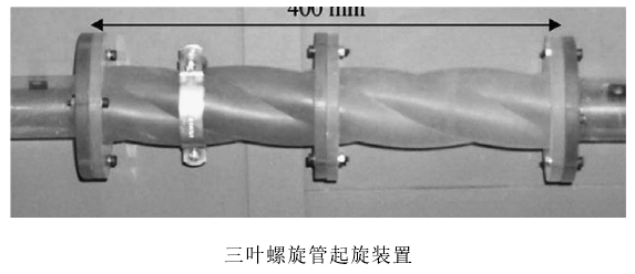 S.Fokeer等使用的起旋裝置整體呈麻花狀,通過管壁對(duì)氣流的約束作用形成旋流,兩端通過法蘭與輸送管道連接,可安裝在輸送管道的任意位置處。