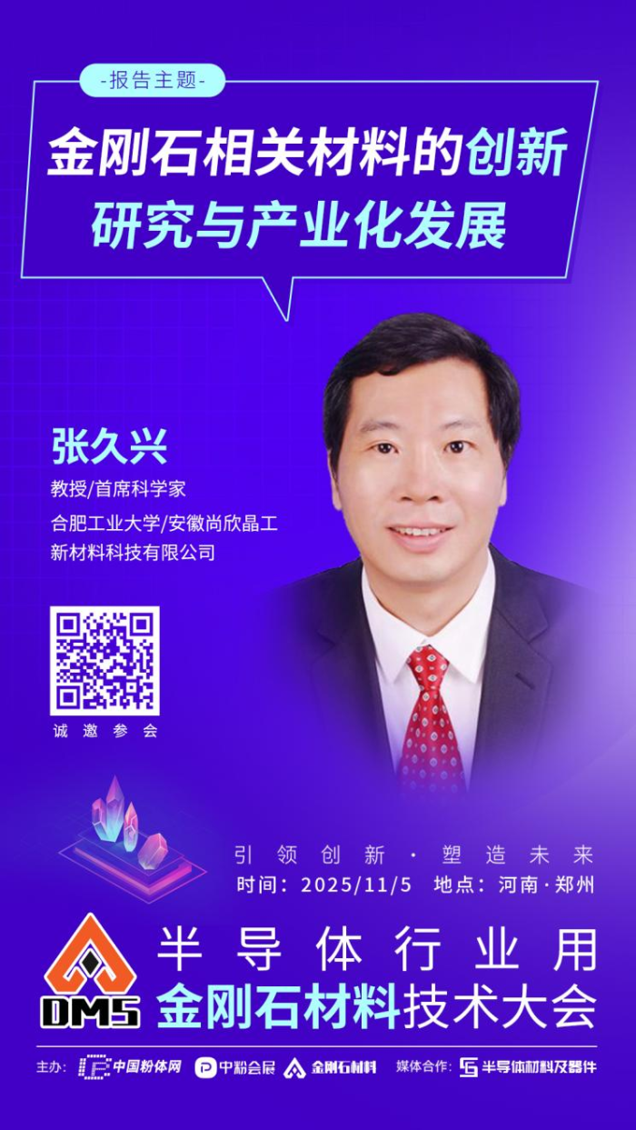 2025年11月5日,中國(guó)粉體網(wǎng)將在河南•鄭州舉辦“2025半導(dǎo)體行業(yè)用金剛石材料技術(shù)大會(huì)”。屆時(shí),我們邀請(qǐng)到合肥工業(yè)大學(xué)張久興教授出席本次大會(huì)并作題為《金剛石相關(guān)材料的創(chuàng)新研究與產(chǎn)業(yè)化發(fā)展》的報(bào)告,報(bào)告將闡述SPS獨(dú)特?zé)Y(jié)機(jī)理和效應(yīng),分析SPS技術(shù)在高新材料研究中的優(yōu)勢(shì)和產(chǎn)業(yè)化可行性,系統(tǒng)介紹金剛石二級(jí)增壓用特種硬質(zhì)合金、金剛石-金屬?gòu)?fù)合材料的研究進(jìn)展與未來(lái)展望。