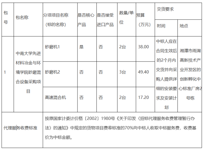 項(xiàng)目名稱(chēng):中南大學(xué)先進(jìn)材料冶金與環(huán)境學(xué)院砂磨混合設(shè)備采購(gòu)項(xiàng)目