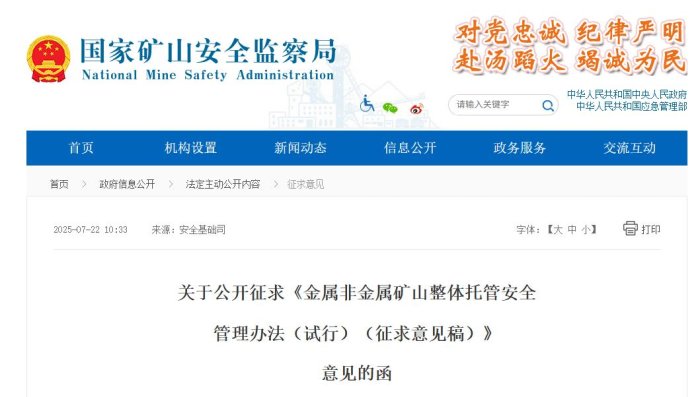 《金屬非金屬礦山整體托管安全管理辦法(試行)(征求意見(jiàn)稿)》