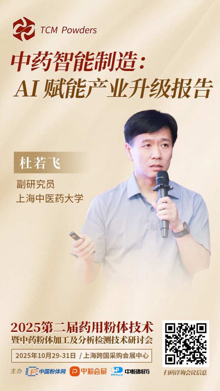 聚焦“從粉體技術(shù)、論中藥工藝”為主題,10月29-31日,中國粉體網(wǎng)將于2025IPIE上海高端粉體裝備與科學儀器展覽會期間,同期舉辦“2025第二屆藥用粉體技術(shù)暨中藥粉體加工及分析檢測技術(shù)研討會”,屆時上海中醫(yī)藥大學副研究員杜若飛將為大家?guī)怼?strong>中藥智能制造:AI賦能產(chǎn)業(yè)升級報告》的主題報告。報告主講人將探討中藥智能制造的背景、研究現(xiàn)狀與發(fā)展前景,重點分析人工智能(AI)在中藥產(chǎn)業(yè)中的應(yīng)用。發(fā)展至今,AI技術(shù)在中藥生產(chǎn)、工藝優(yōu)化、質(zhì)量控制和數(shù)據(jù)分析等方面發(fā)揮了關(guān)鍵作用。跨學科融合與AI賦能將成為中藥智能制造的未來發(fā)展方向。