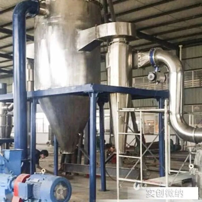 (2)分級粒徑更細,可實現納米級分級,且顆粒球形度、粒徑分布均勻度更佳。高溫蒸汽磨粉碎強度更高,是傳統(tǒng)氣流磨的兩倍以上,沖擊力度是傳統(tǒng)氣流磨四倍以上,比常規(guī)氣流磨節(jié)能30%。例如,根據需要,可加工10um的超細粉體,甚至是1-2um的超微粉體。